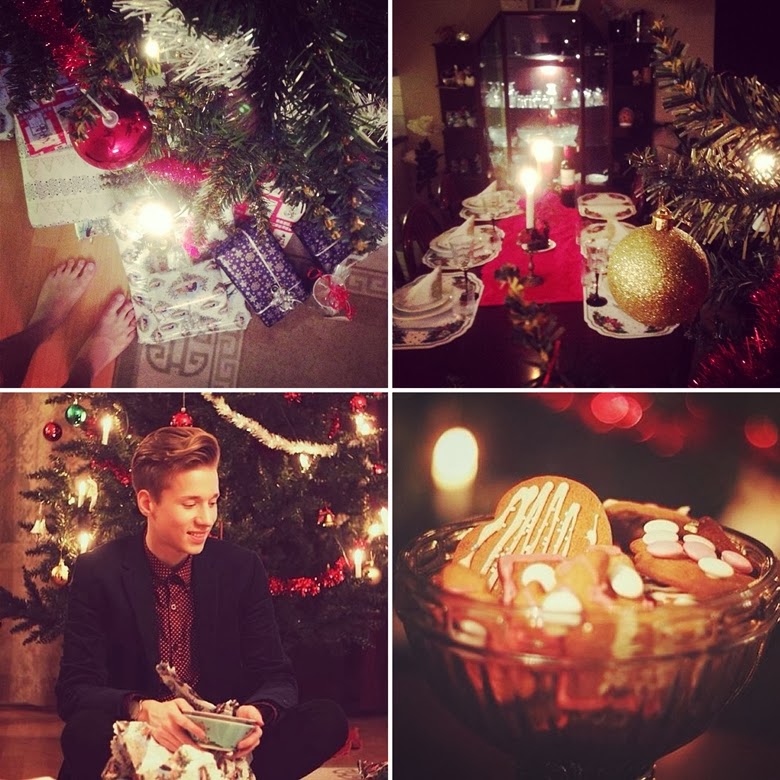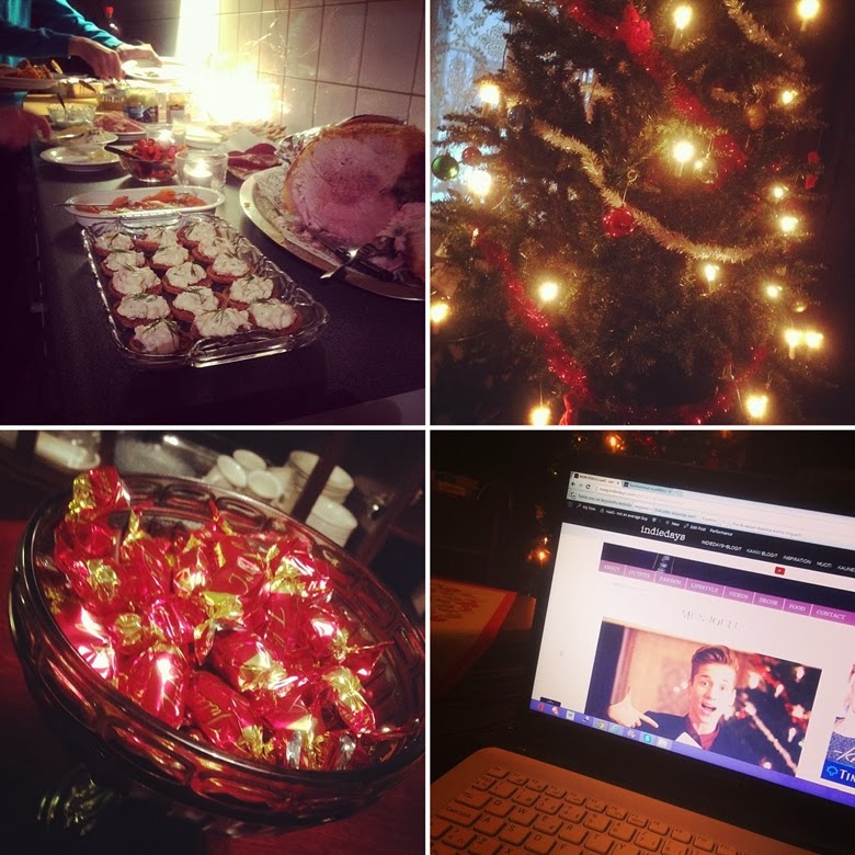 // Nyt on syöty jouluruokaa niin ettei tarvi taas vuoteen syödäkkään kinkkua tai laatikoita:) // Tältä näytti meidän joulukuusi tänä jouluna. Erittäin poikkeuksellinen kuusi meillä, sillä aiemmin se on aina ollut viiden lapsen kerhoissa tekemien koristeiden peitossa ja ollut aikamoinen sekamelska, mutta kylläkin tunnelmallinen ja omaperäinen:D // Yhtiä parhaista suklaista! // Blogijuttujen tekoa myös jouluna. Tämmöstä tää tehobloggaajan elämä on 😀 //