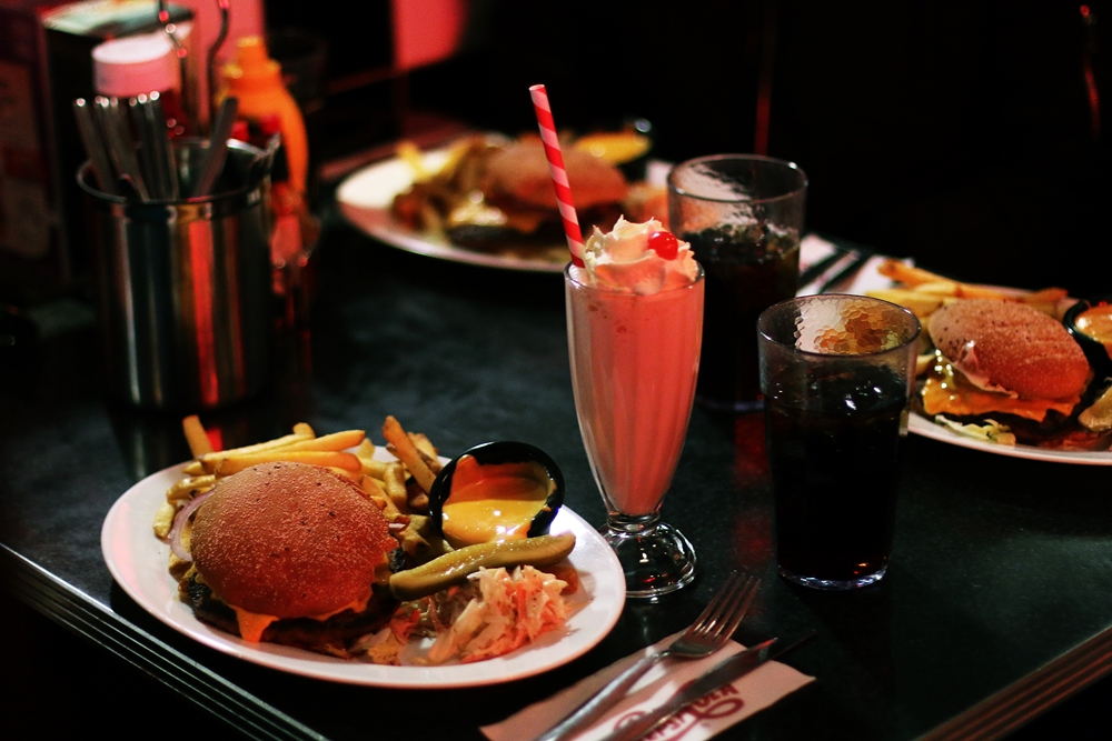 Oli ihanaa nukkua joka aamu pitkään ilman herätyksiä. Puristaa itse aamupalalle appelsiinimehua ja tehdä croissantteja, vaikka tosin käytettiin sitä tölkissä olevaa valmistaikinaa, sillä se on niin helppoa ja siitä tulee niiiin hyviä croissantteja! Etenkin kun kääri sisälle Fazerin maitosuklaata, nam! Päivällä pyorittiin keskustassa kauppoja kierrellen, kuvailtiin ja käytiin syömässä. Löysin muutamia kivoja uusia ravintoloita Tampereelta, kuten Siperian Classic American Diner, missä nää tän postauksen kuvat napattiin. Vaikka ei tää ihan uus tuttavuus ollut, sillä kävin tuolla joku reilu pari vuotta takaperin syömässä, kun mulla oli meet & greet Tampereella. Jos kyseiseen kaupunkiin joskus eksytte suositteen kokeilemaan myös Café Europan kuumialeipiä.